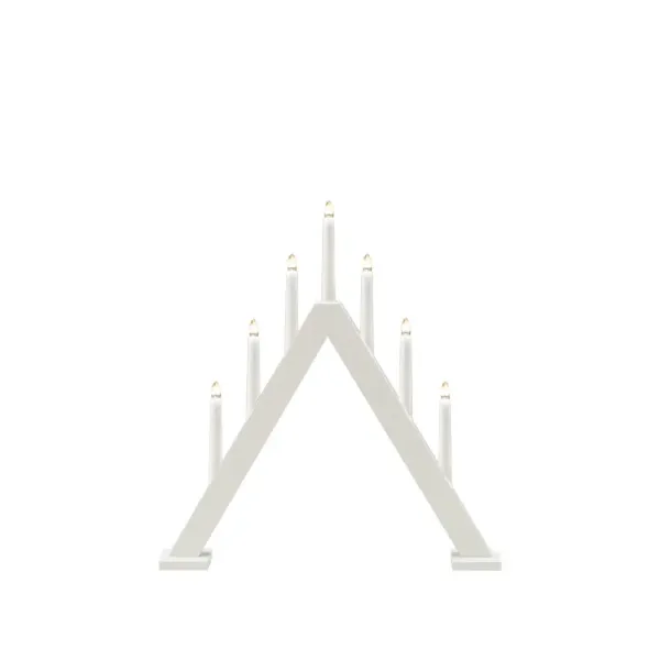 Anna kotiisi ajaton ja tyylikäs joulutunnelma tällä tyylikkäällä adventtikynttilänjalalla, joka on mattavalkoiseksi lakattua puuta. Klassinen kolmion muoto seitsemällä kynttilällä luo lämpimän ja tunnelmallisen hehkun, joka korostaa adventtiaikaa. Täydellinen ikkunalaudalle tai pöydälle, tämä kynttilänjalka sopii yhtä hyvin moderniin ja perinteiseen sisustukseen. Yksinkertainen mutta tehokas joulukoristeet! Mukana 1,7 metrin valkoinen johto, virtakytkin ja pistoke. Sisältää 7 vaihdettavaa E10-lamppua (34V).